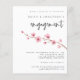 Sakura Cherry Blossom Engagement Invitation. A budget price SMALLER 4.5” x 5.6” alternative. Available in a SEMI-GLOSS 110 lb CARD STOCK which is the default option (thicker for invitations), OR a SATIN FINISH 80 lb THINNER PAPER STOCK (ideal for enclosures). Envelopes are an optional extra and are slightly larger than the card size. Modern minimalist style with a single branch of Sakura florals across the page from the left hand side. Engagement is set in an informal handwriting style and is placed above the leaves along with your names, with the other details beneath. Easily personalise the details to your own. A coordinating Dusty pink background is on the reverse. You can change text and background colours to any of your choice to match your wedding colour theme.