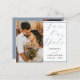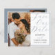 Elegant save the date announcement is prefect to get your wedding plans in motion. It features a photo template and large 'save the date' typography in dusty blue on a white background. Customise with your own detials.