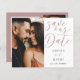 Indulge in our exquisite Save the Date announcement, designed to set your wedding plans in motion with grace and style. Featuring a sophisticated photo template and prominent 'save the date' typography in soft rose gold against a pristine white backdrop, this elegant design awaits your personal touch. Customise it with your own details for a truly memorable introduction to your special day.