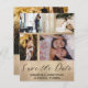 Elegant save our date announcement. This rose gold template features space for 4 of your favourite couples photos in white with cool hand written calligraphy in dark grey. Easy to edit with your own unique details.