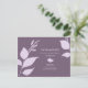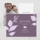 This budget wedding save the date postcard features minimalist lilac leaves with the bride and grooms details in white over a dusty plum purple background. The simple card reverses to include your couple's photo and space to write in the recipients address. To see the complete modern wedding stationery line visit www.zazzle.com/dotellabelle
