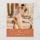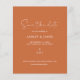 Chic script boho photo save the date flyer with your names, wedding date, location and wedding website in white elegant handwritten script calligraphy and modern typography on a burnt orange background. Simply add your personal details and favourite photo! Exclusively designed for you by Happy Dolphin Studio. If you need any help or matching products, please contact us through our store chat. We're happy to help you make your wedding the most beautiful day!