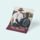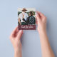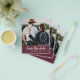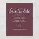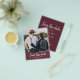 Stylish script photo save the date flyer with your names, wedding date, location and wedding website in white handwritten script calligraphy and modern typography on a burgundy background. Simply add your personal details and favourite photo! Exclusively designed for you by Happy Dolphin Studio. If you need any help or matching products, please contact us through our store chat. We're happy to help you make your wedding the most beautiful day!