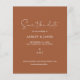 Chic script boho photo save the date flyer with your names, wedding date, location and wedding website in white elegant handwritten script calligraphy and modern typography on a terracotta background. Simply add your personal details and favorite photo! Exclusively designed for you by Happy Dolphin Studio. If you need any help or matching products, please contact us through our store chat. We're happy to help you make your wedding the most beautiful day!
