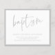 Great invitations, simple & good price! Only con was they sent the right amount of invites, but not enough envelopes. Everything on the invitation was just as expected.