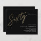 Modern minimalist 60th birthday party invitation features stylish faux gold foil number handwritten script Sixty and your party details in classic serif font on black background colour, simple and elegant, great surprise adult milestone birthday invitation for men and women. the black background colour can be changed to any colour of your choice.