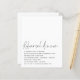 Budget Script Black White Rehearsal Dinner A budget price SMALLER 4.5” x 5.6” alternative. Available in a SEMI GLOSS 110 lb CARD STOCK ). The header is in a set elegant handwriting style with the details beneath. Lots of white space at the top for a contemporary feel! Easily personalise with your info.