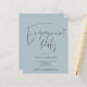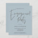 A value for money BUDGET alternative on a smaller size 4.5 x 5.6” semi-gloss 110lbs weight, which is of similar thickness to a postcard (however is not suitable to use as a postcard.). PLEASE NOTE there is ONE invite per sheet. Handwritten Script Engagement Party Dusty Blue Invitation Contemporary minimalist design with the main header Engagement Party in a set dark brown stylish script and the rest of the text you can easily personalise. You can also change the colour and font of the editable text if you so wish via the Click to Customise Further option.
