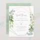 This botanical-themed invitation is perfect for your summer or spring bridal shower celebration! Featuring watercolor eucalyptus greenery leaves on top of a faux gold foil geometric frame. "Bridal Shower" appears in a classy handwritten script with the other details in modern serif typography. As part of the budget selection here on Zazzle, these invitations do not come with envelopes nor do they fit snugly in a standard-sized envelope. The closest size is A6 but there will be a gap of approximately half an inch. If you don't mind the lack of snugness you could use such widely available A6 envelopes. Otherwise, this design can be transferred to a standard 5x7 format (which comes with envelopes) using the design transfer tool. As a rough guide, as of the time of writing, 100 budget invitations (including a volume discount) would cost around $39 whereas 100 standard 5x7 invites including envelopes would cost approximately $135. Your mileage may vary depending on Zazzle's available promo codes, site-wide sales, or changes in pricing.