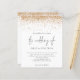 Elegant Script Gold Confetti Glitter Wedding Invitation. A budget price SMALLER 4.5” x 5.6” alternative. Available in a SEMI GLOSS 110 lb CARD STOCK which is the default option (recommended for invitations), OR a SATIN FINISH 80 lb THINNER PAPER STOCK (ideal for enclosures). Envelopes are an optional extra and are slightly larger than the card size. A stylish set typography in black for the main heading the Wedding Of complementing the rest of the text which you can easily personalise. A gold faux glitter confetti border runs across the top on each side.