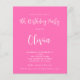 Budget Script Hot Pink 9th Birthday Party. A budget priced smaller 4.5 x 5.6” alternative on a 110lbs semi-gloss, similar in thickness to a postcard. There is ONE per sheet. Minimalist typographical style for the ninth or any age birthday party girl. Fully customisable. Easily change the text and your can change colours of text and background too via Edit further if you wish.