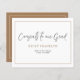 A value for money BUDGET alternative on a smaller size 4.5 x 5.6” semi-gloss 110lbs weight, which is of similar thickness to a postcard (however is not suitable to use as a postcard.). PLEASE NOTE there is ONE invite per sheet. Budget Simple Script Line Border Graduation Annnouncement. A simplistic elegant design, with the main header, Congrats to our Grad, in a set trendy black font. The rest of the text on each side is easily personalised and you can also change the editable text colours and style if you wish via the click to customise further option as well as the gold background on the back.