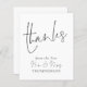Budget Script New Mr Mrs Wedding Any Colour Thanks. A budget price SMALLER 4.5” x 5.6” alternative. Available in a SEMI GLOSS 110 lb CARD STOCK which is the default option (recommended for invitations), OR a SATIN FINISH 80 lb THINNER PAPER STOCK (ideal for enclosures). Envelopes are an optional extra and are slightly larger than the card size. Thanks and Mr & Mrs are set in an elegant handwriting style script on the front and the rest of the text on each side you can easily personalise with your names, and your thank you message for your guests. Shown in black and white, however can be changed to any colour of your choice via the customise further option.