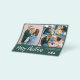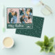 Budget Modern, Simple 4 Photo Collage Merry Christmas Brush Script Holiday Paper Flyer in green. This festive, minimalist, four (4) family photo holiday card features a pretty photo collage and saying „Merry Christmas” greeting text is written in a hand lettered brush script font type. On the back side snowy background. Pretty greeting card for your family and friends in Winter Holiday season.