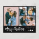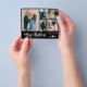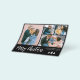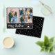 Budget Modern, Simple 4 Photo Collage Merry Christmas Brush Script Holiday Paper Flyer in black and white. This festive, minimalist, four (4) family photo holiday card features a pretty photo collage and saying „Merry Christmas” greeting text is written in a hand lettered brush script font type. On the back side snowy background. Pretty greeting card for your family and friends in Winter Holiday season.
