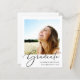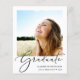 Modern budget-friendly graduation announcement featuring "Graduate" in an elegant script and her photo and her name, school and class year in simple modern typography.