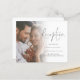 Budget Script Photo QR Code Reception Details Enclosure. A budget price SMALLER 4.5” x 5.6” alternative. Available in a SEMI-GLOSS 110 lb CARD STOCK which is the default option (thicker for invitations), OR a SATIN FINISH 80 lb THINNER PAPER STOCK. Simply replace the sample photo with your own favourite. A gradient overlay layer is on top of your photo so it fades out as it reaches the centre with the text partially overlaid on top. Evenine Party is in a modern set script and easily personalise the rest of the text. Replace the QR code on the back with a QR code to your wedding website. You can create QR codes for free online. Simply search “QR code creator” and lots of options come up to create for free. You can also delete the QR code and text on the back if not required via customise further.