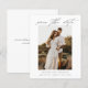 An elegant script photo save the date with vertical photo and minimal text. Click edit to customise this design.