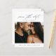 A budget romantic, simple photo save the date card featuring beautiful script calligraphy, horizontal photo and minimal text on the front. The back has a vertical photo with wedding website. Click the edit button to customise this design.