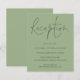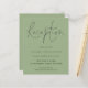Budget Script Reception Details Sage Green Wedding Enclosure. A budget price SMALLER 4.5” x 5.6” alternative. Available in a SEMI GLOSS 110 lb CARD STOCK which is the default option (recommended for invitations), OR a SATIN FINISH 80 lb THINNER PAPER STOCK (ideal for enclosures). Envelopes are an optional extra and are slightly larger than the card size. An elegant set handwriting style script for the heading and the rest of the text you can easily personalise.