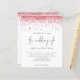 Elegant Script Red Glitter Wedding Invitation. A budget price SMALLER 4.5” x 5.6” alternative. Available in a SEMI GLOSS 110 lb CARD STOCK which is the default option (recommended for invitations), OR a SATIN FINISH 80 lb THINNER PAPER STOCK (ideal for enclosures). Envelopes are an optional extra and are slightly larger than the card size. A stylish set typography in black for the main heading the Wedding Of complementing the rest of the text which you can easily personalise. A red faux glitter border runs across the top on each side.