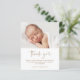 This modern photo baby baptism thank you card features hand lettered calligraphy script thank you art that is moveable and that you can easily change the colour of, a horizontal photo and editable text. Click the edit button to customise this design.