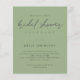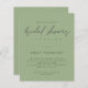 Script Sage Green Bridal Shower Invitation. A budget price SMALLER 4.5” x 5.6” alternative. Available in a SEMI-GLOSS 110 lb CARD STOCK which is the default option (thicker for invitations), OR a SATIN FINISH 80 lb THINNER PAPER STOCK (ideal for enclosures). Envelopes are an optional extra and are slightly larger than the card size. Simple elegance on popular sage green, with Bridal Shower in a set handwriting style script. Easily personalise the rest of the text to your own details. You can also change the text and background colours via the customise further option if you wish.