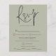 Budget Script Pale Soft Sage Green Wedding RSVP with Menu choices. A budget price SMALLER 4.5” x 5.6” alternative. Available in a SEMI-GLOSS 110 lb CARD STOCK which is the default option (thicker for invitations). Envelopes are an optional extra and are slightly larger than the card size. A stylish set typography in black for the main heading RSVP complementing the rest of the text which you can easily personalise.