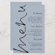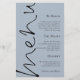 A budget price size 5.5” x 8.5”, This modern Dusty blue design has Menu in elegant set script running up the left hand side and the rest of the text is aligned to the right which you can easily personalise as well as your names and wedding date on the back. Text and background colours on either side can be changed to any of your choice via the customise further option.