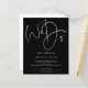 Script We Do Black QR Code Wedding Invitation. A budget price SMALLER 4.5” x 5.6” alternative. Available in a SEMI-GLOSS 110 lb CARD STOCK which is the default option (thicker for invitations), OR a SATIN FINISH 80 lb THINNER PAPER STOCK (ideal for enclosures). Add your QR code to your wedding website on the back makes this a convenient option for your guests to RSVP and see all the details without the need for separate RSVP and details cards. A white typography on stylish black design. Stylish set script We Do takes centre stage at the top.The rest of the text you can easily personalise. Text and background colours can be changed if you wish to better suit your wedding theme via the customise further option.