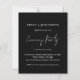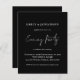 A value for money BUDGET alternative on a smaller size 4.5 x 5.6” semi-gloss 110lbs weight, which is of similar thickness to a postcard (however is not suitable to use as a postcard.). PLEASE NOTE there is ONE invite per sheet. Budget Script Wedding Evening Party Black Invitation. A set handwritten style for Evening Party and the rest of the text you can easily personalise. The text and background colours can be changed to any or your choice via the customise further option.