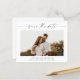 An elegant script photo save the date with horizontal photo and minimal text. Click the personalise button to customise this design.