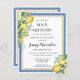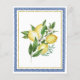 A She Found Her Main Squeeze Lemon Bridal Shower Theme is the perfect summer bridal luncheon. Refreshing and cool citrus fruit always create beautiful displays and refreshments. The Jenny's Lemons Collection takes chic watercolor lemons and pair them with Mediterranean blue tiles. In this design the tiles create a blue frame. A thin gold frame elevates it. Two lemon bouquets add a floral touch. She found her Main Squeeze is written at the top. The remainder of the bridal luncheon details follow.