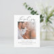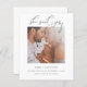 Budget She Said Yes Script Photo Engagement Announcement. A budget price SMALLER 4.5” x 5.6” alternative. Available in a SEMI-GLOSS 110 lb CARD STOCK which is the default option (thicker for invitations), OR a SATIN FINISH 80 lb THINNER PAPER STOCK (ideal for enclosures). A modern design to announce your exciting news, with an ornate set script with a heart swash for She Said Yes above your photo which is in square format and the rest of the text you can easily personalise. Choose a romantic photo of you both and replace the sample photo in the template placeholder with it. You can also change the white background on the front and back, via the Customise Further option if you wish, as well as the text colour to better match your chosen photo.