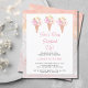 This pretty ice cream-themed budget bridal shower invitation is decorated with three watercolor ice cream cones, flowers, and a pastel background.