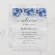 A modern, elegant wedding program, timeline. Faux silver looking background decorated with faux sparkles and blue flowers. Personalise and add your names and wedding details. Black coloured letters. If you have more text it's possible to reduce the line space. You can also add text on the back.