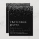 There are two paper options to choose from for this size (4.5 x 5.6”) in the Budget range. For this product, I would recommend the semi-gloss which is a 110 gsm card stock, similar in thickness to a postcard. The Satin option is a much thinner paper 80gsm. The default is set to semi-gloss. PLEASE NOTE there is ONE per sheet. Budget Silver Glitter Confetti Christmas Party Black Invite. The header is large in stylish lowercase with the details beneath. Lots of space for a contemporary feel and a border of confetti style silver glitter at the top on both sides. Easily personalise the text to your own details.