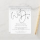 Budget Silver Glitter We Do QR Code Wedding Invite. A budget price SMALLER 4.5” x 5.6” alternative. Available in a SEMI-GLOSS 110 lb CARD STOCK which is the default option (thicker for invitations), OR a SATIN FINISH 80 lb THINNER PAPER STOCK (ideal for enclosures). Add your QR code to your wedding website on the back makes this a convenient option for your guests to RSVP and see all the details without the need for separate RSVP and details cards. You can create QR codes for free online. Simply search “QR code creator” and lots of options come up to create for free.  Stylish set script We Do takes centre stage and a border of silver glitter is at the top.The rest of the text you can easily personalise. Text and background colours can be changed if you wish to better suit your wedding theme via the customise further option.