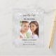 A modern wedding Save the Date photo card. A faux silver metallic looking background. Decorated with faux glitter dust. Personalise and add your photo, wedding details and add your own qr code to your wedding website.