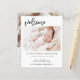 Budget Simple Baby Announcement Elegant Photo Collage that have a photo on the front and 4 Picture on the back. The cards contain a modern hand lettered cursive script typography that are elegant, simple and modern to use for a newborn baby boy or baby girl sent out by the mother and father of the infant child to family and friends.