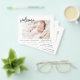 Budget Simple Baby Announcement Elegant Photo Collage that have a photo on the front and 4 Picture on the back. The cards contain a modern hand lettered cursive script typography that are elegant, simple and modern to use for a newborn baby boy or baby girl sent out by the mother and father of the infant child to family and friends.