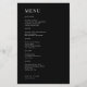 Modern black trendy minimalist typography custom budget wedding menu card template.