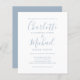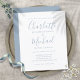 Featuring signature style names, this elegant budget dusty blue wedding invitation can be personalised with your information in chic lettering. Designed by Thisisnotme©