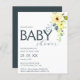 Budget simple elegant baby shower invitation with lemon light yellow flower arrangement.