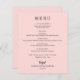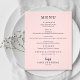 An affordable, value paper pink dinner menu card with your food choices in chic lettering is perfect for a modern wedding reception, wedding rehearsal dinner, anniversary party, or any special event with a sit-down dinner. Measures 4.5" x 5.6" (or choose from 2 other sizes) printed on 110 lb. weight paper. Envelopes are available at an additional charge. The Live Design Service can help you with your design layout or adjust the colours if needed.