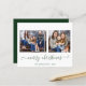 BUDGET Green Simple Script Modern Merry Christmas Photo Holiday Card featuring two of your favourite photos and a simple, yet elegant script Merry Christmas greeting. The back is adorned with a festive, winter forest green background. Perfect for your holiday cards this year! **Our BUDGET paper is smaller, lighter, and more delicate, but still beautiful! Don't forget the envelopes!** If you need assistance or matching items, please contact us at cedarandstring@gmail.com.
