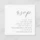 This simple, elegant wedding website enclosure card features the title "rsvp" in charcoal grey script font over a grey italic text aligned with the right margin on a white background. Upload your wedding website QR code to replace the sample image on the reverse side, framed by the words "scan me to RSVP."