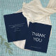 Budget Simple Navy Blue Custom Thank You Card. A value for money smaller 4.5 x 5.6 inch alternative defaulted to the semi gloss option which is recommended for invitations and is a similar thickness to a postcard. The Satin option is a MUCH THINNER PAPER stock. Budget Simple Black White Custom Thank You Card. A fully customisable design. Easily change the words. The font colour and type can be changed via the edit menu. You can also change text and background colours on either side if you wish.