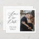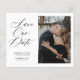 Minimalistic chic arch shape photo BUDGET AFFORDABLE wedding save the date card in simple black and white with a modern elegant calligraphy script. +++++++++++ Suitable for any season classy modern theme weddings.