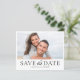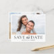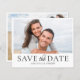 Modern and minimal save the date card featuring sleek black typography on a crisp white background. This contemporary design includes space for two personal photos, allowing you to showcase your favourite moments. Perfect for minimalist, elegant, or black-and-white themed weddings. Fully customisable and easy to edit with your own details for a stylish and memorable first impression.